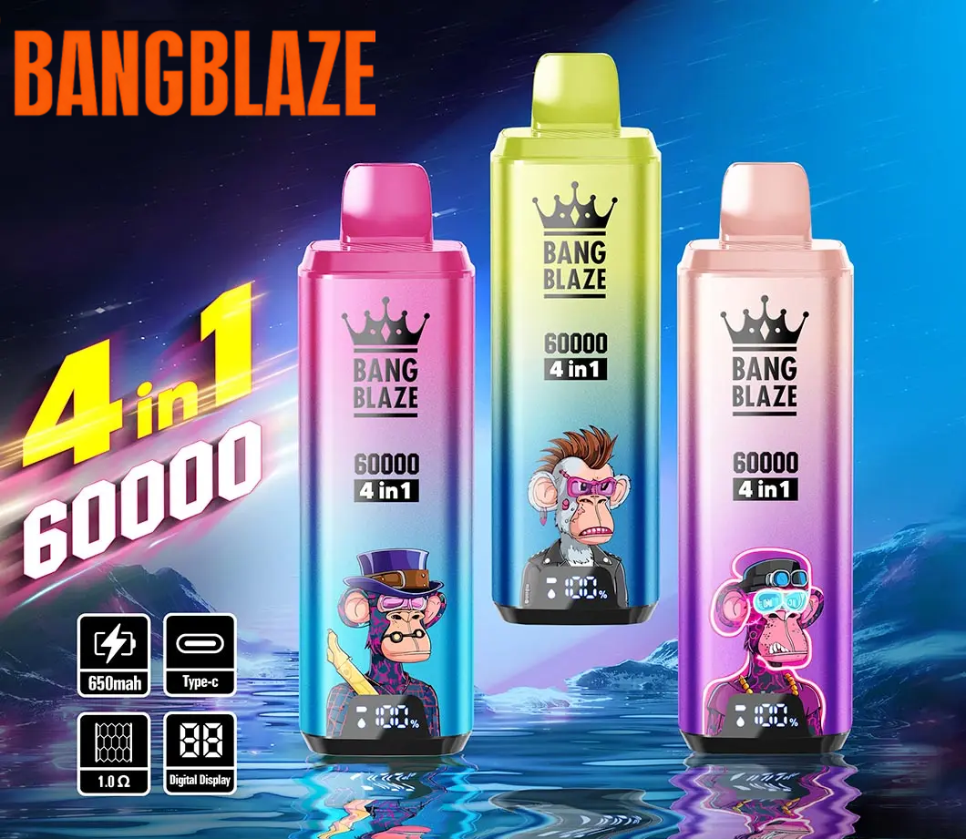 The Bang Blaze 60,000 Puffs – a 4-in-1 flavor innovation with 60,000 puffs and an LCD display – is a powerful device offering four unique flavors in one sleek, rechargeable vaporizer. Designed for vapers who value variety and convenience, this powerful e-cigarette offers up to 60,000 puffs , setting a new standard for durability and flavor flexibility.